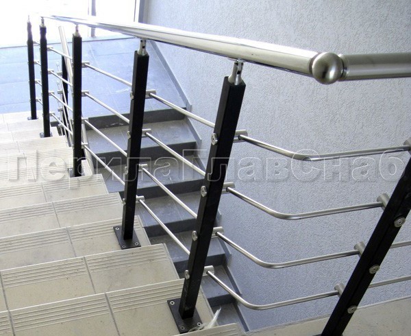 Четыре ригеля на сварке, круглый поручень и квадратные стойки