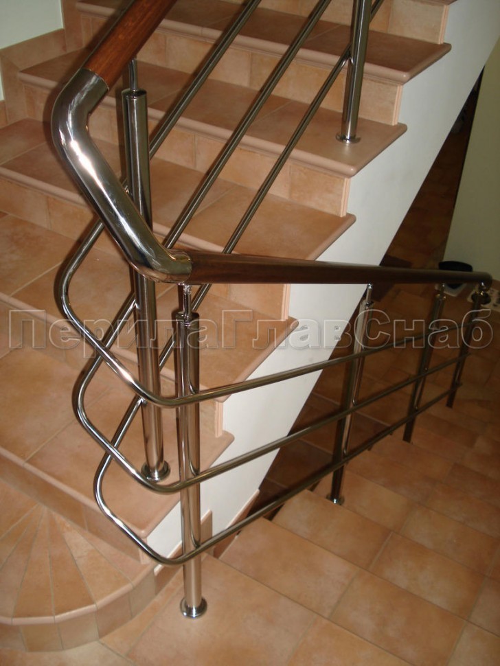 Четыре ригеля на сварке, круглый поручень и квадратные стойки