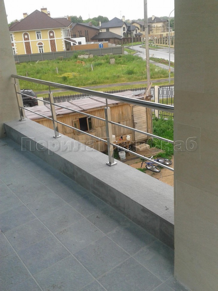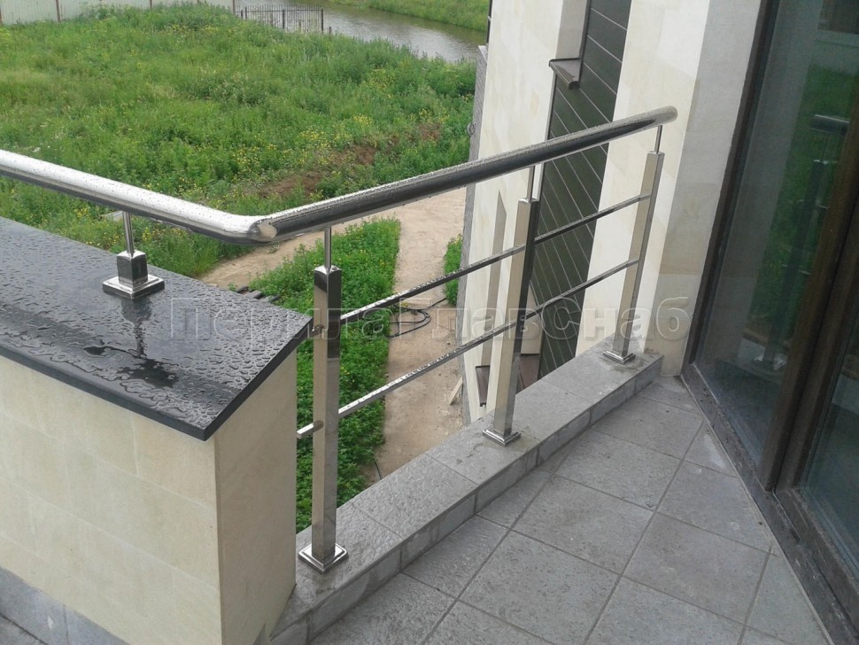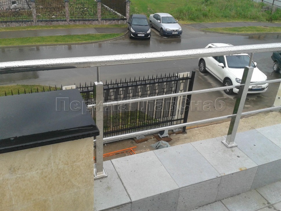 Записаться на встречу Два ригеля на держателях, круглый поручень и квадратные стойки