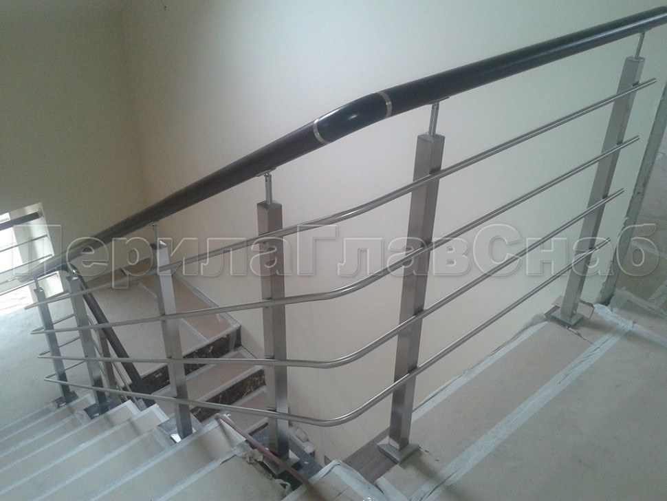 Записаться на встречу Два ригеля на сварке, круглый поручень и квадратные стойки
