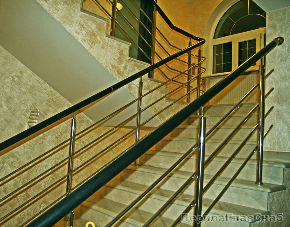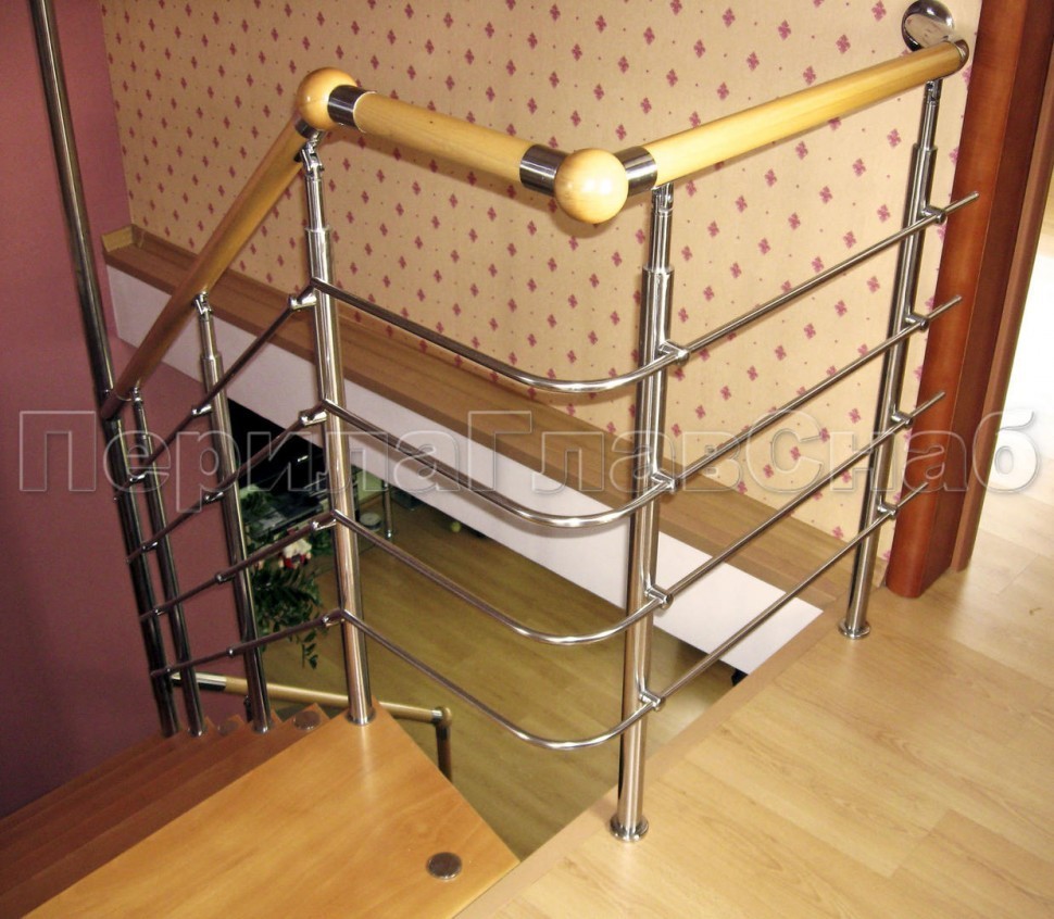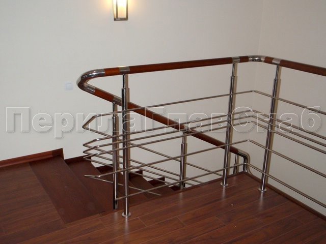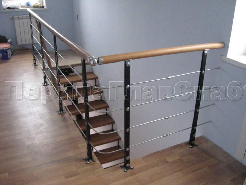 Записаться на встречу Четыре ригеля на держателях, круглый деревянный поручень и круглые стойки