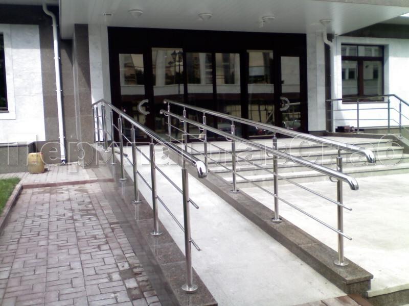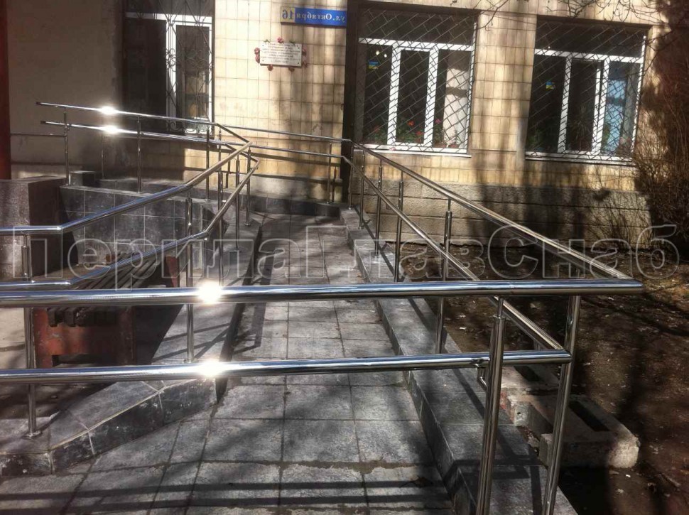 Нержавеющие ограждения для школ и детских садов с вертикальным заполнением “Частокол” - вариант №1 для крыльца