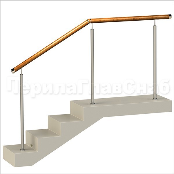 Ограждения с двумя стойками в каждую ступень с деревянным поручнем и без ригелей