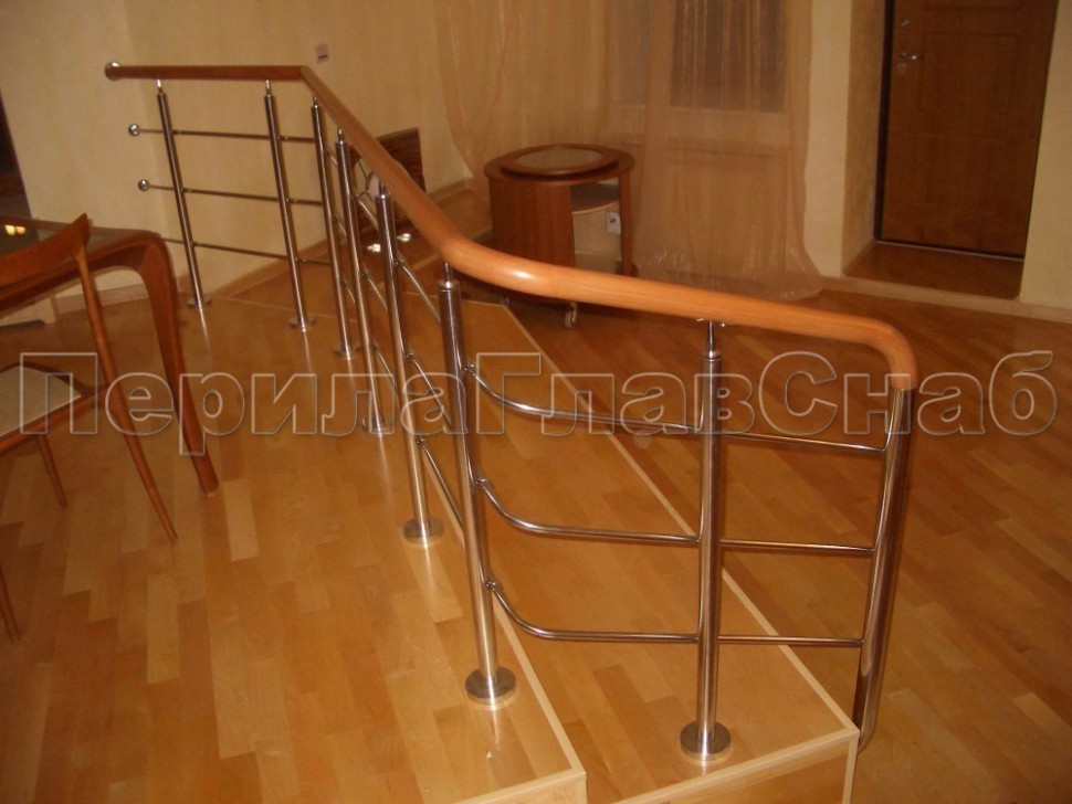 Нержавеющие ограждения без ригелей с круглым поручнем и стойками с деревянными вставками