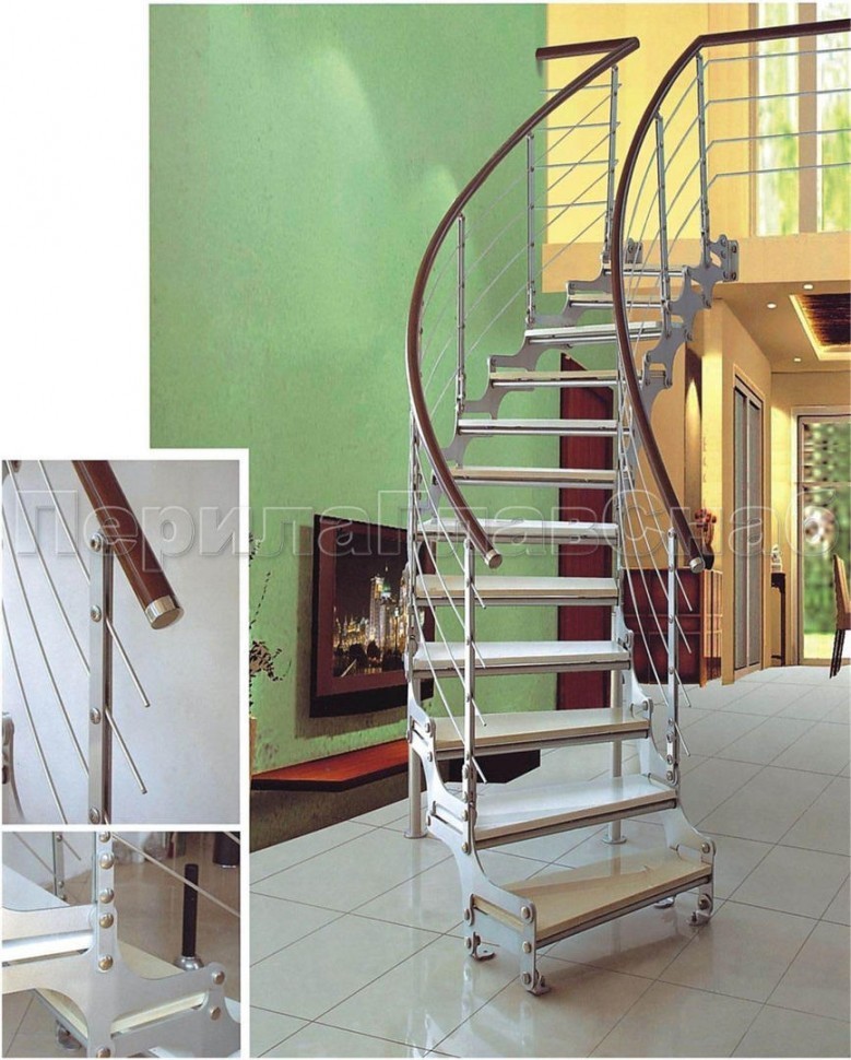 Ограждения со стойками в каждую ступень с круглым деревянным поручнем без ригелей