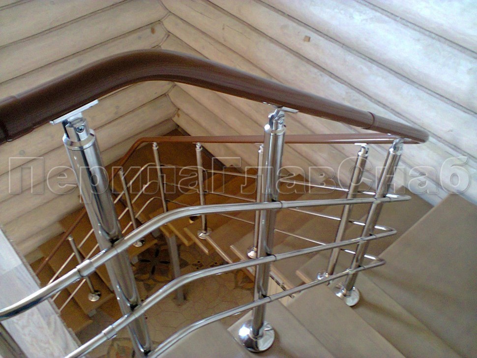 Нержавеющие ограждения без ригелей с круглым деревянным поручнем и стойками с деревянными вставками