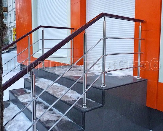 Четыре ригеля на сварке, круглый поручень и квадратные стойки