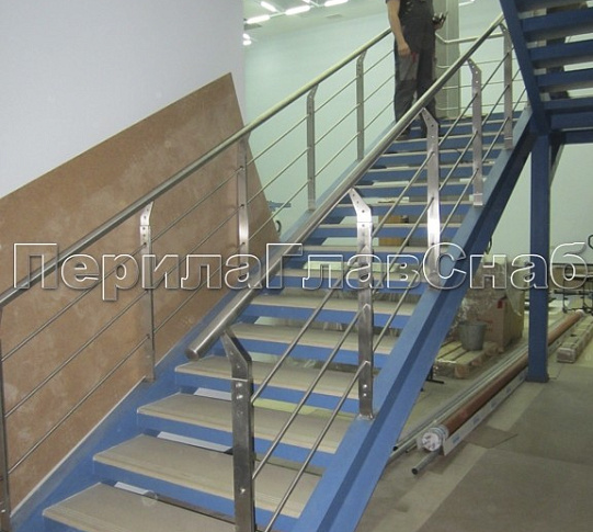 Записаться на встречу Ограждение с нестандартными нержавеющими стойками и ригельным заполнением