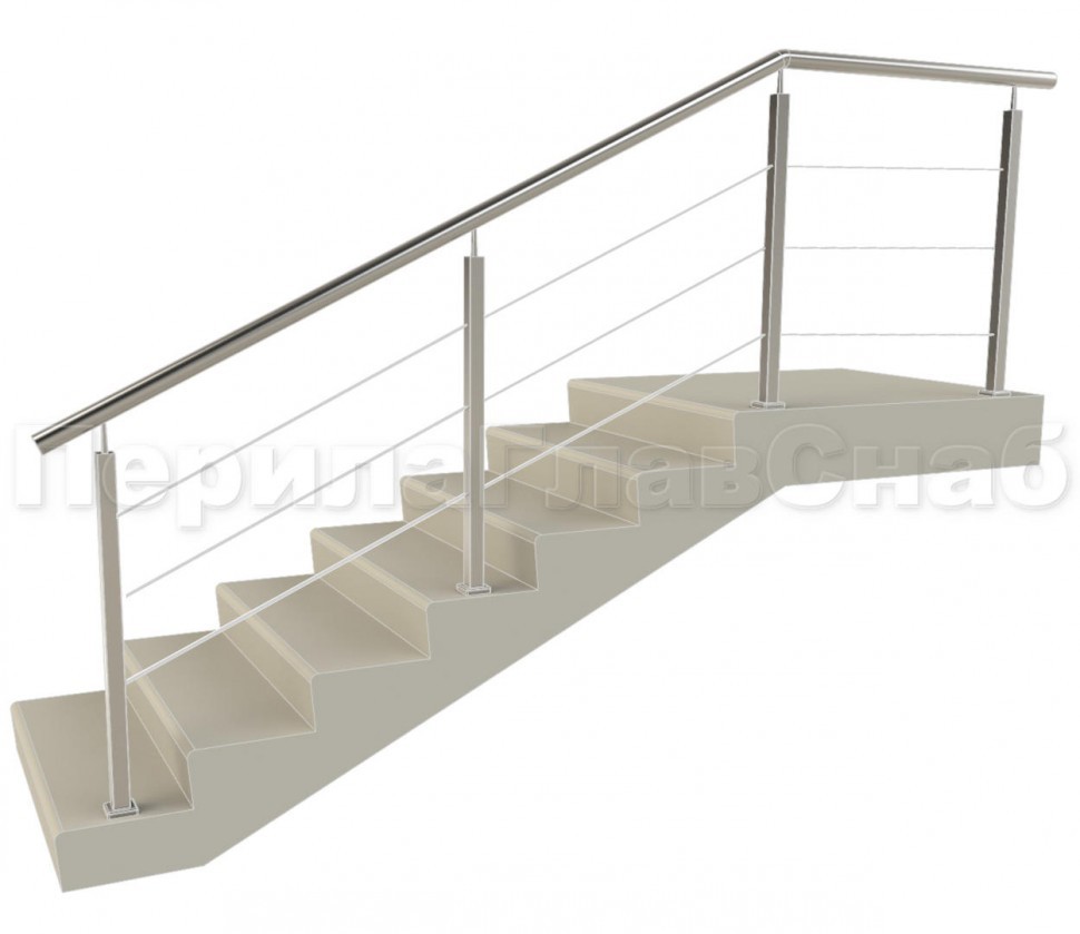 Ограждения из нержавейки. Заполнение из 3х тросиков. Квадратные стойки.