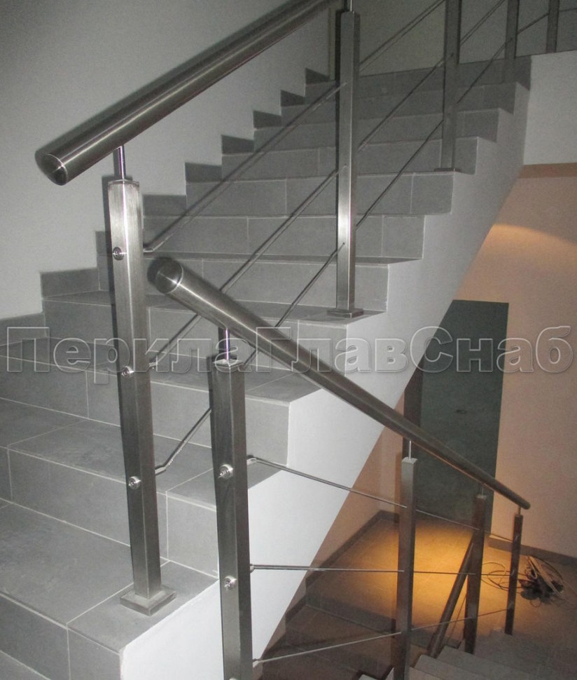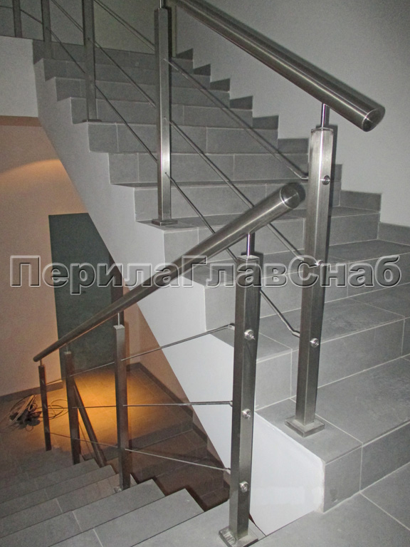 Ограждения из нержавейки. Заполнение из 2х тросиков. Квадратные стойки