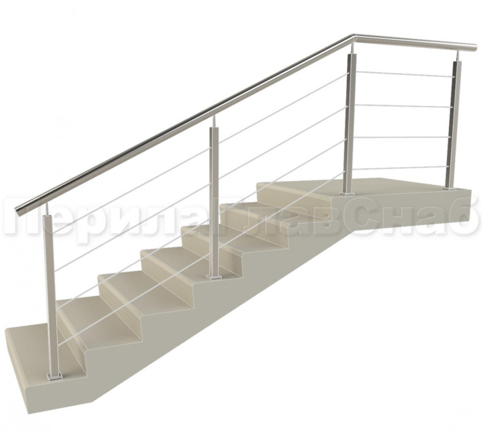 Ограждения из нержавейки. Заполнение из 4х тросиков. Квадратные стойки.