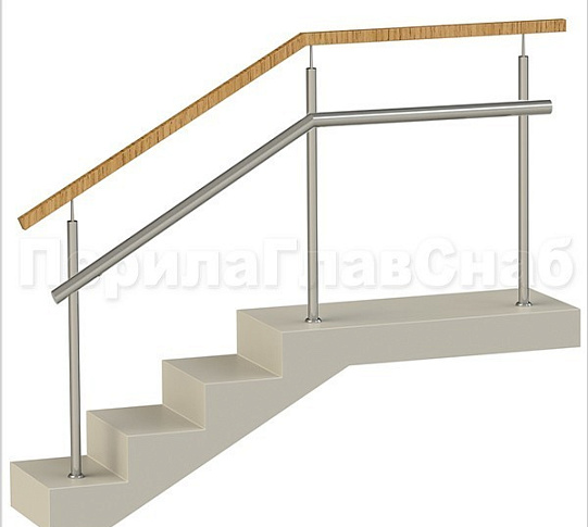 Три ригеля на сварке, квадратный деревянный поручень и круглые стойки