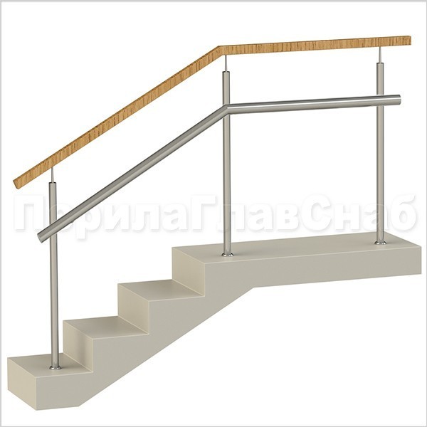Три ригеля на сварке, квадратный деревянный поручень и круглые стойки