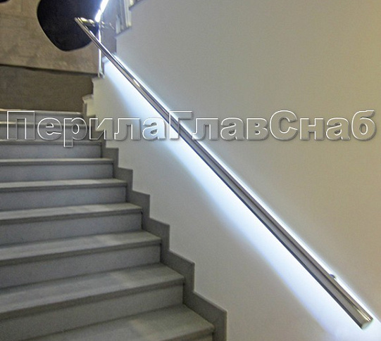 В базовой модели поручня с подсветкой используется полированная сталь, но можно выбрать шлифованную или матированную поверхность типа «сатин».