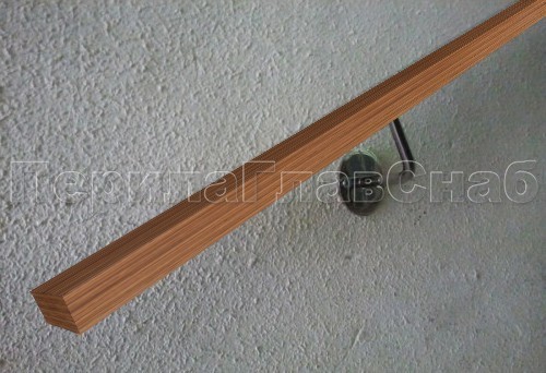 Этот поручень  изготавливается из дубовой заготовки, склеенной из двух ламелей и сращивается фрагментами по длине. В бюджетных вариантах этого поручня ламель всего одна и она не склеенная, а цельная.