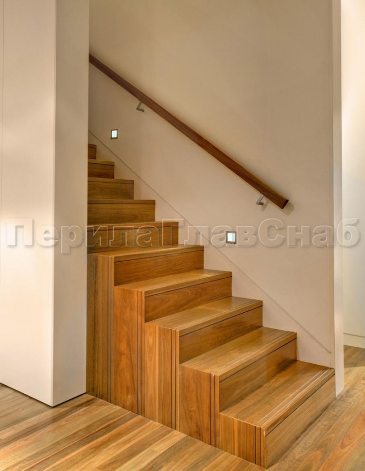 Ограждения со стойками в каждую ступень с квадратным деревянным поручнем без ригелей