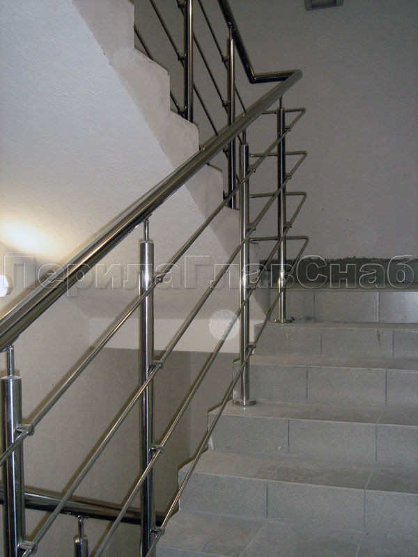 Четыре ригеля на сварке, квадратный поручень и круглые стойки