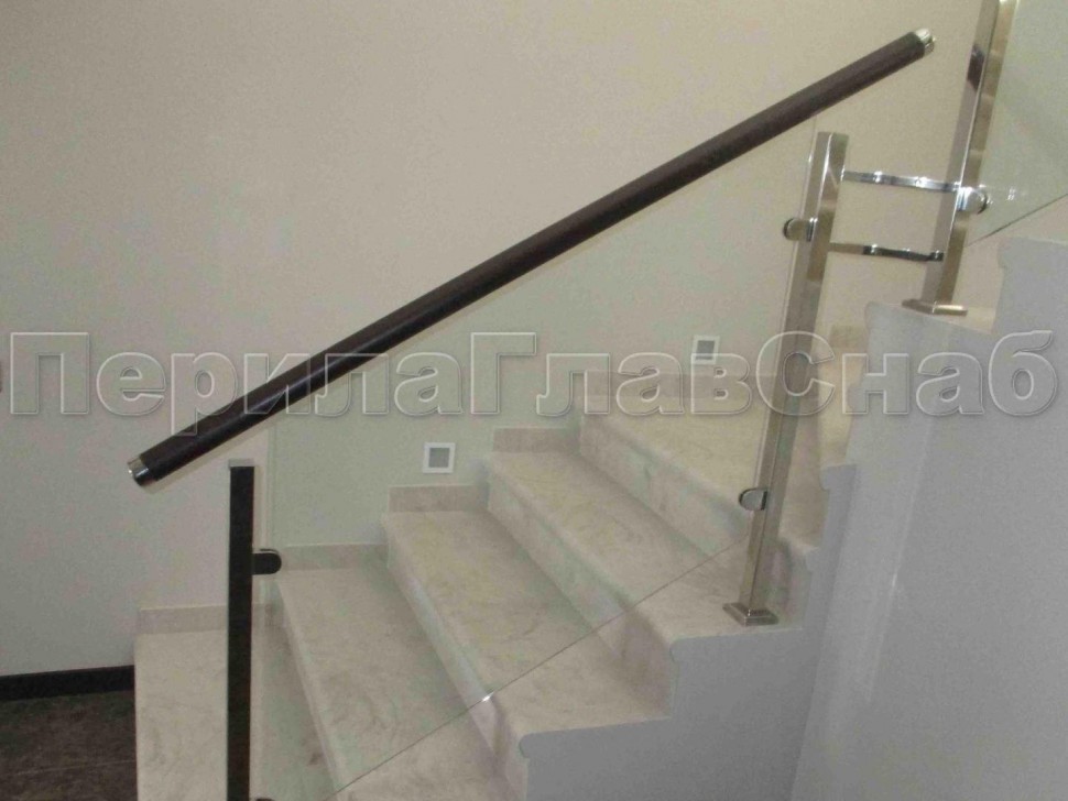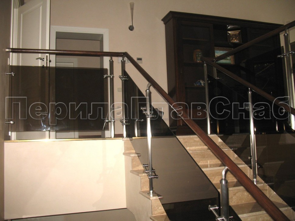 Ограждение с деревянным поручнем с зажимными стеклодержателями и стойками