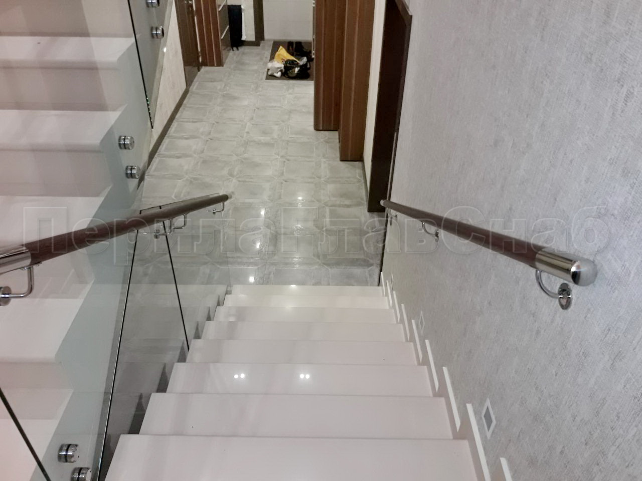 Ограждение с поручнем на выносе на точечном креплении на лестнице в Нижнем Новгороде. Готовые проекты ПерилаГлавСнаб - фото 1 Ограждение с поручнем на выносе на точечном креплении на лестнице в Нижнем Новгороде. Готовые проекты ПерилаГлавСнаб - фото 2