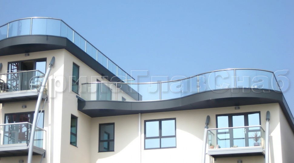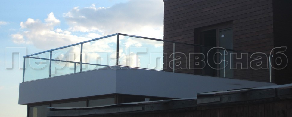 Ограждение с профильным поручнем с пазом на точечном креплении