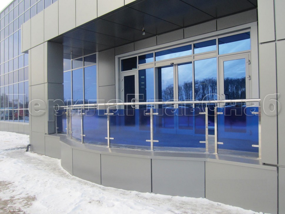 Ограждение для лестницы из нержавейки с зажимными стеклодержателями для крыльца