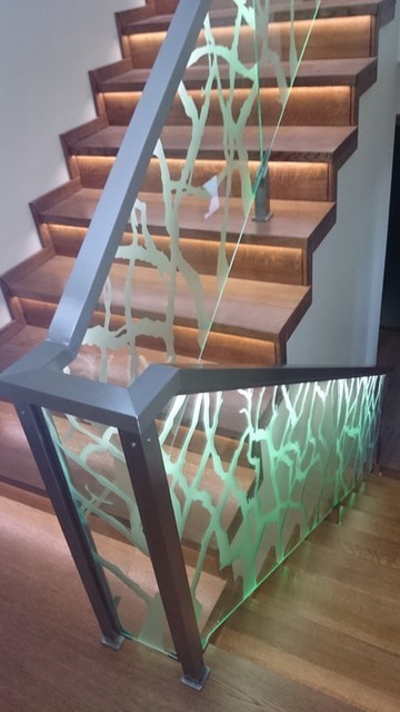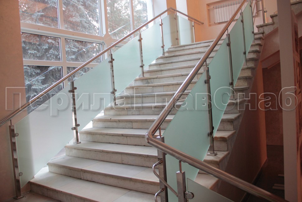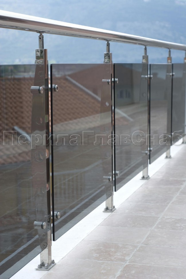 Ограждения лестницы без поручня с зажимными стеклодержателями и стойками