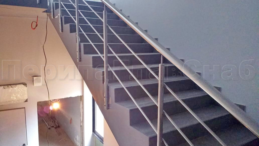 Три ригеля на держателях, круглый поручень и круглые стойки для крыльца в Нижнем Новгороде. Готовые проекты ПерилаГлавСнаб