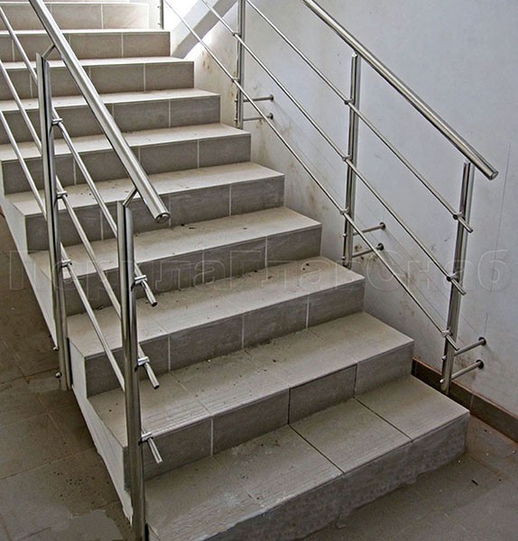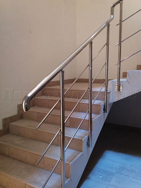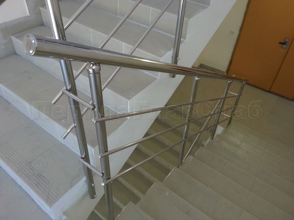 Четыре ригеля на сварке, квадратный поручень и круглые стойки