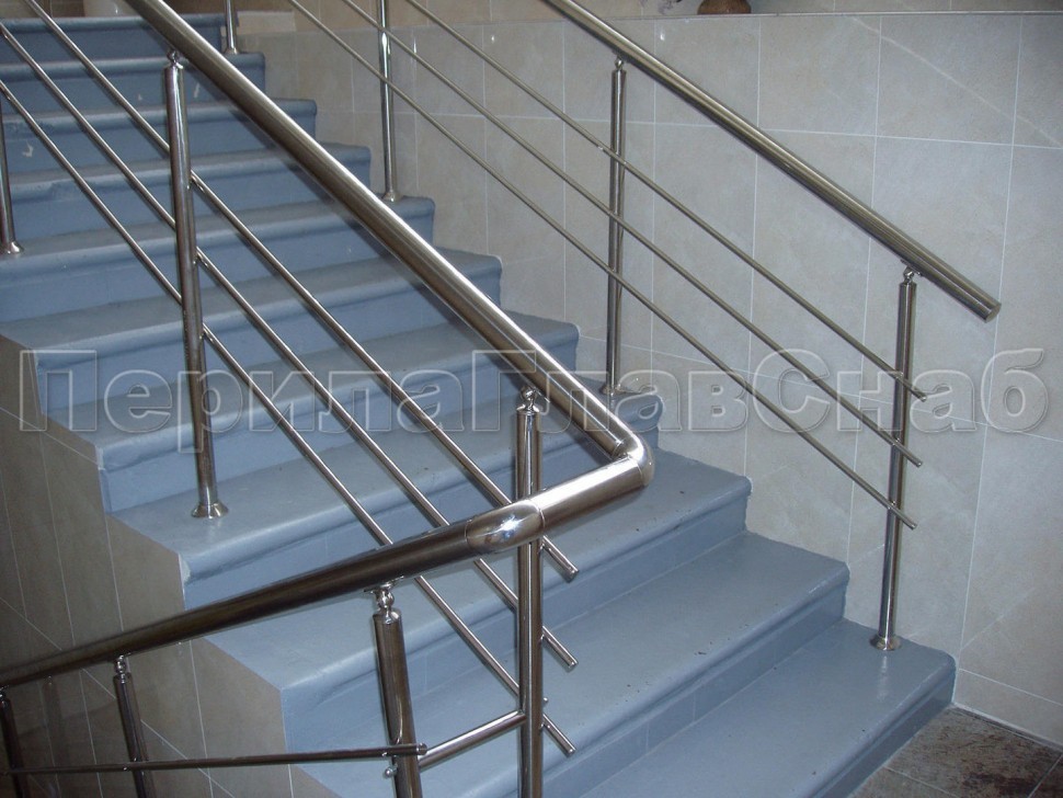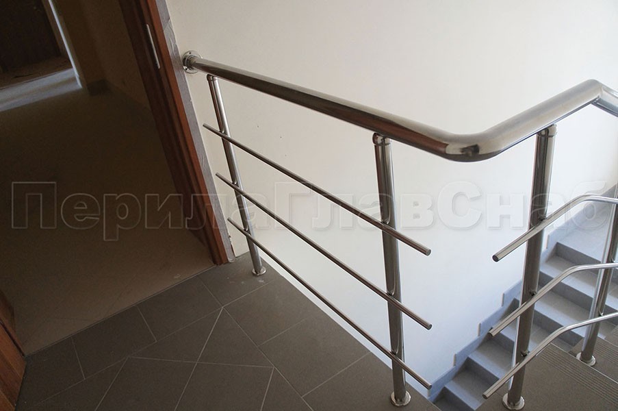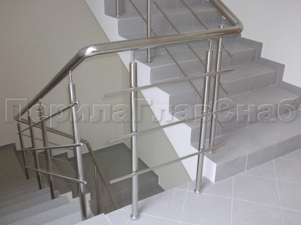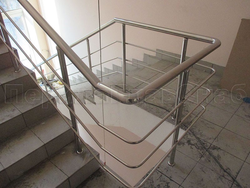 Четыре ригеля на сварке, круглый поручень и квадратные стойки