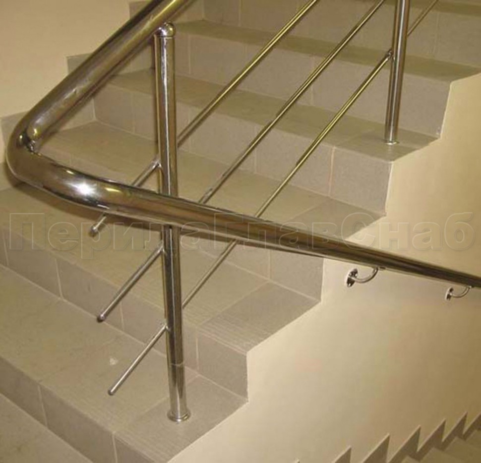 Четыре ригеля на держателях, круглый поручень и квадратные стойки
