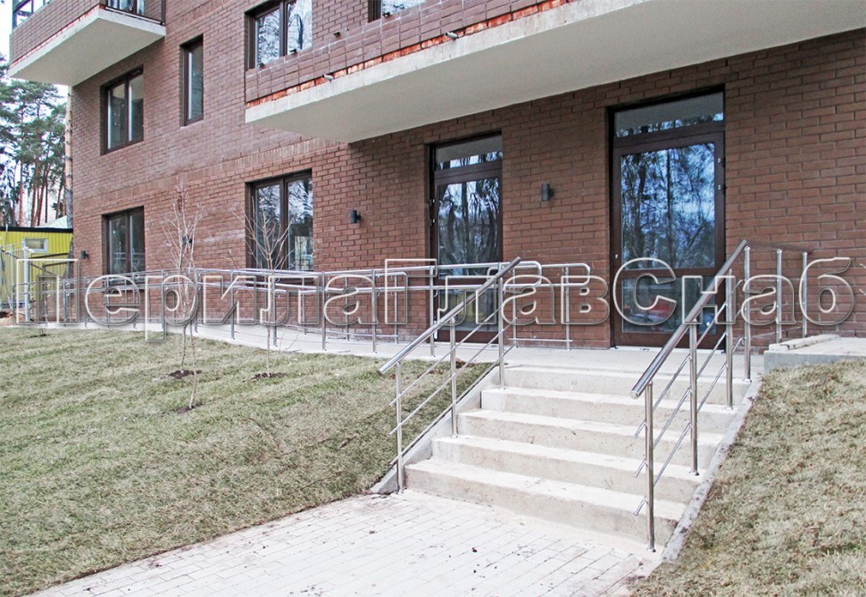 Нержавеющие ограждения для школ и детских садов с вертикальным заполнением “Частокол” - вариант №1 для крыльца
