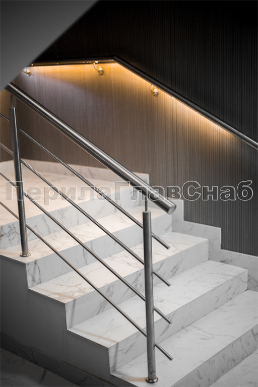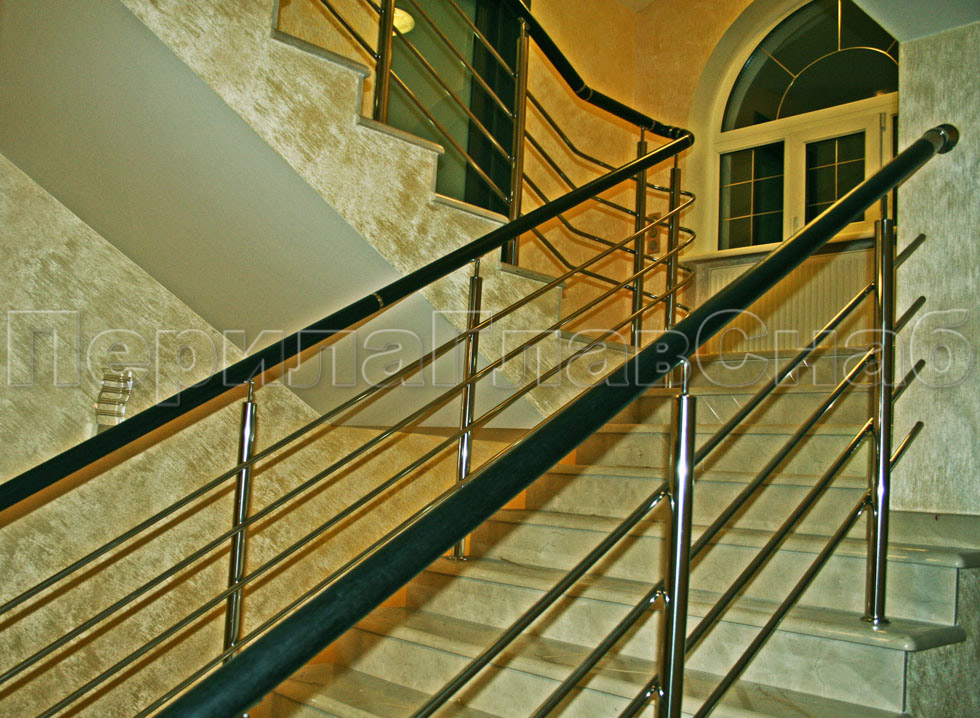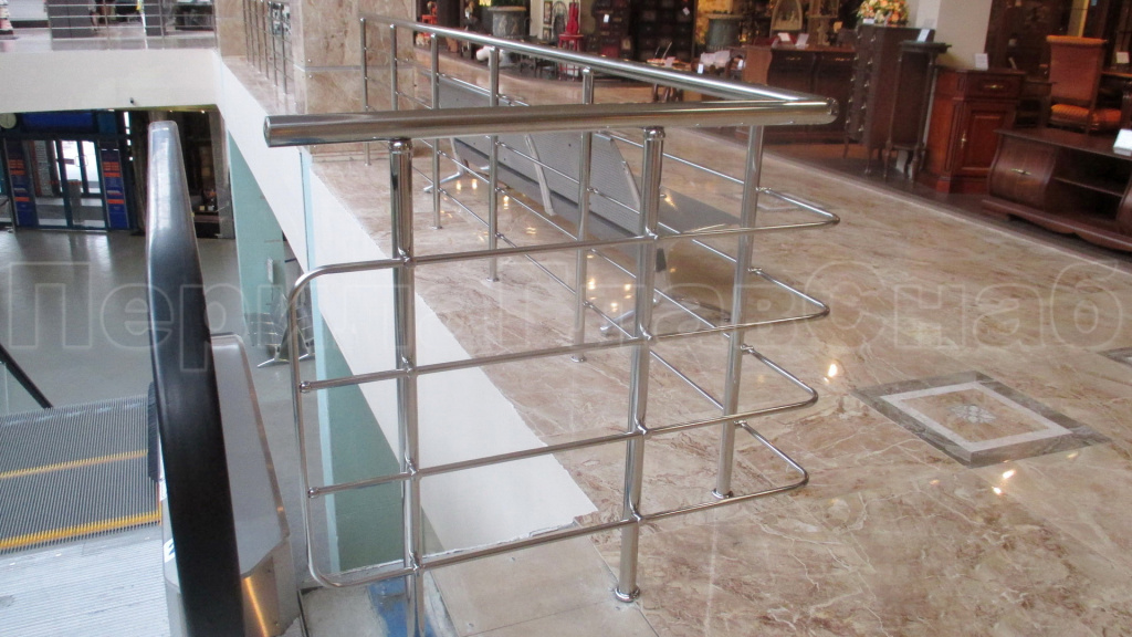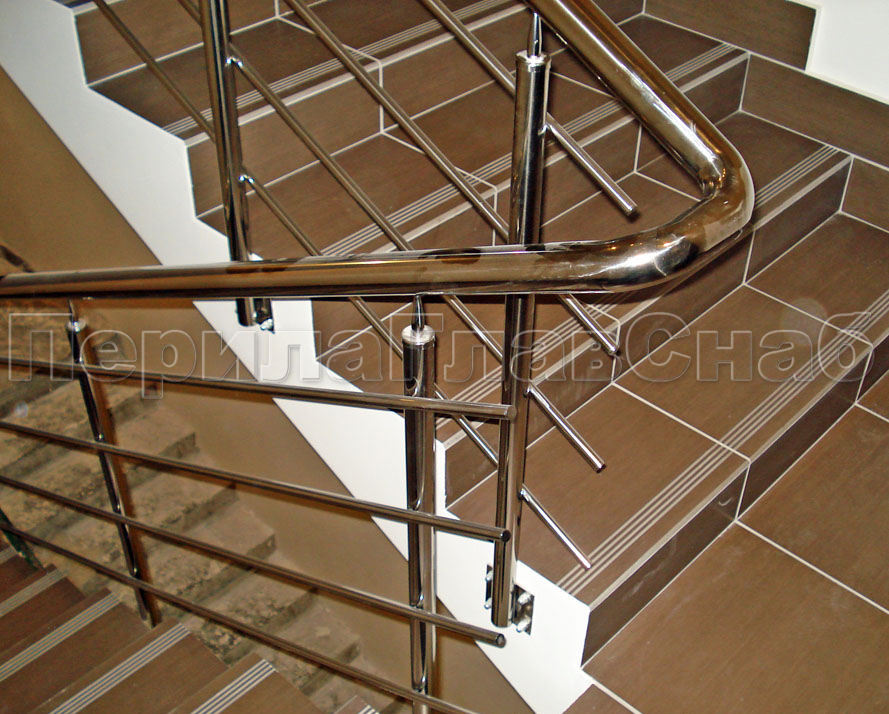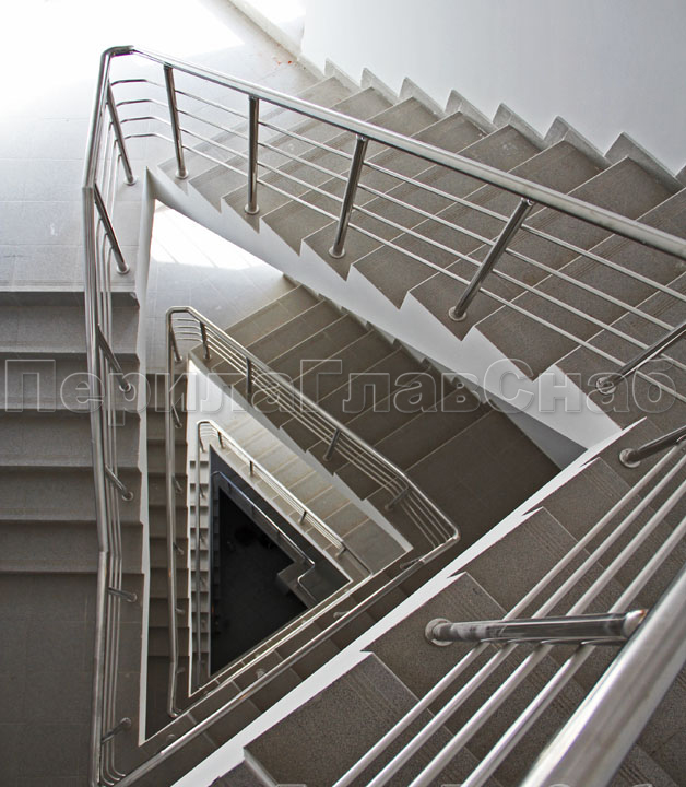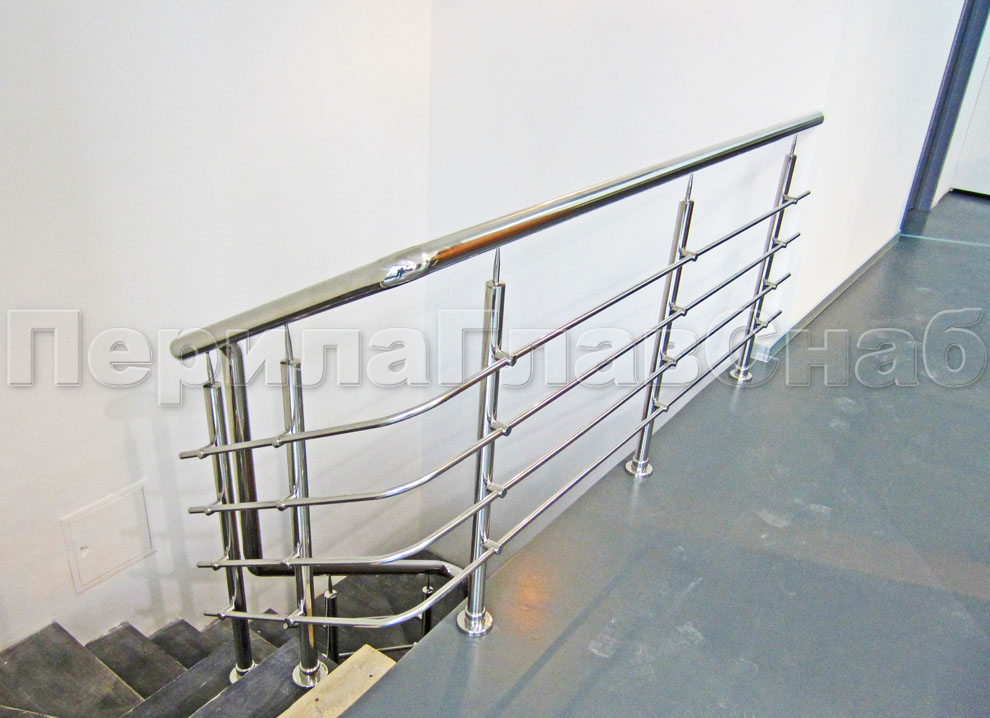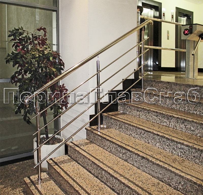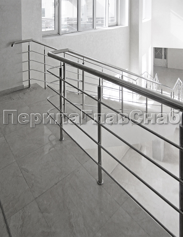 Четыре ригеля на держателях, квадратный поручень и круглые стойки в Нижнем Новгороде. Готовые проекты ПерилаГлавСнаб