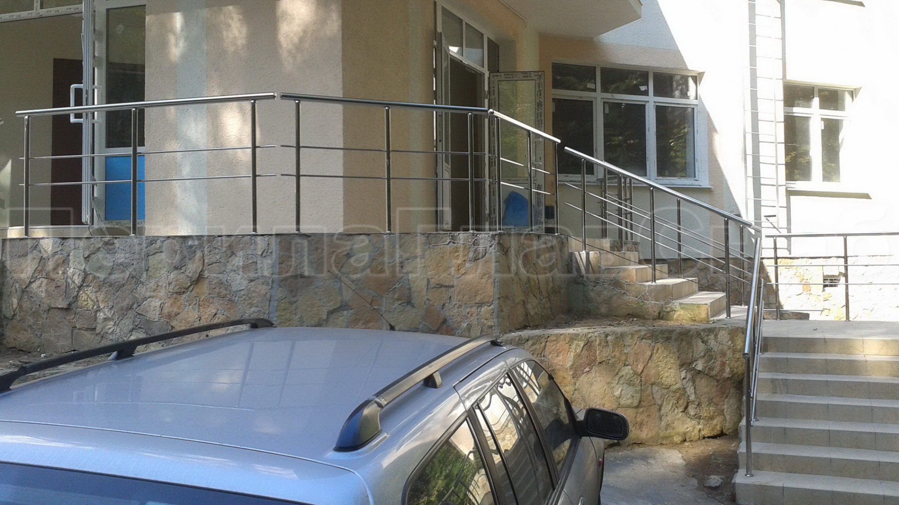 Нержавеющие ограждения для школ и детских садов с вертикальным заполнением “Частокол” - вариант №1 для крыльца