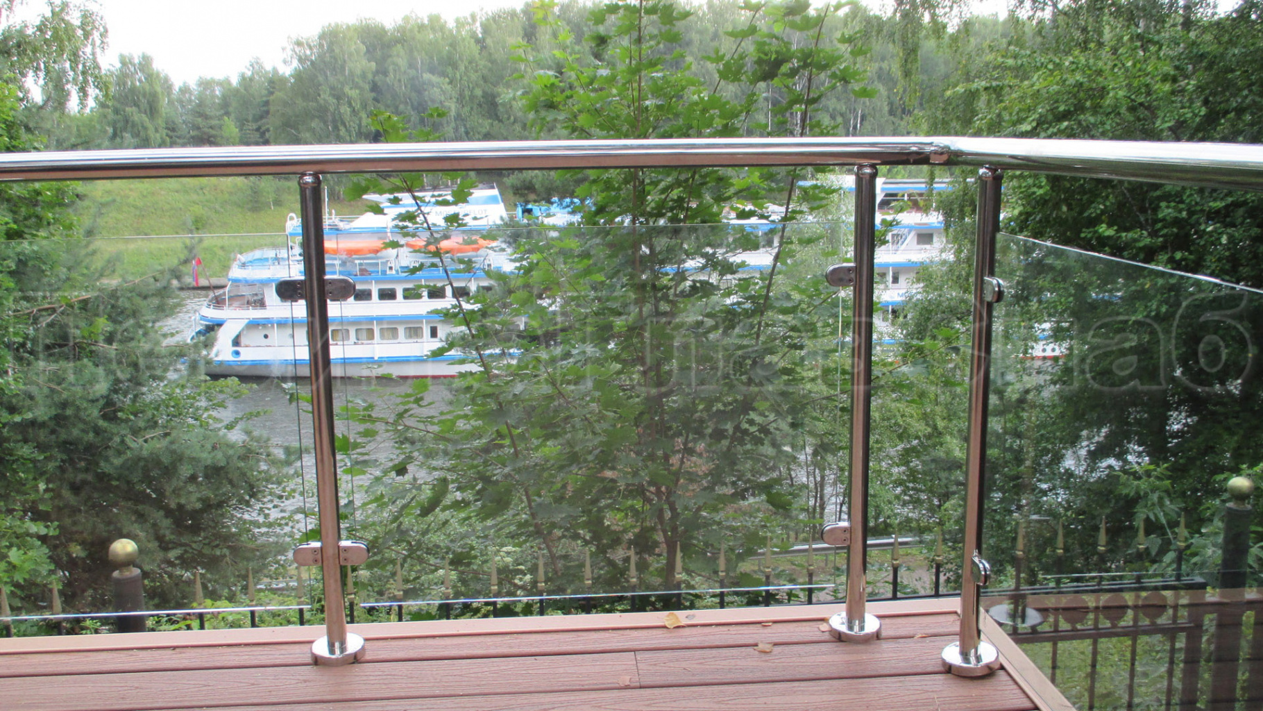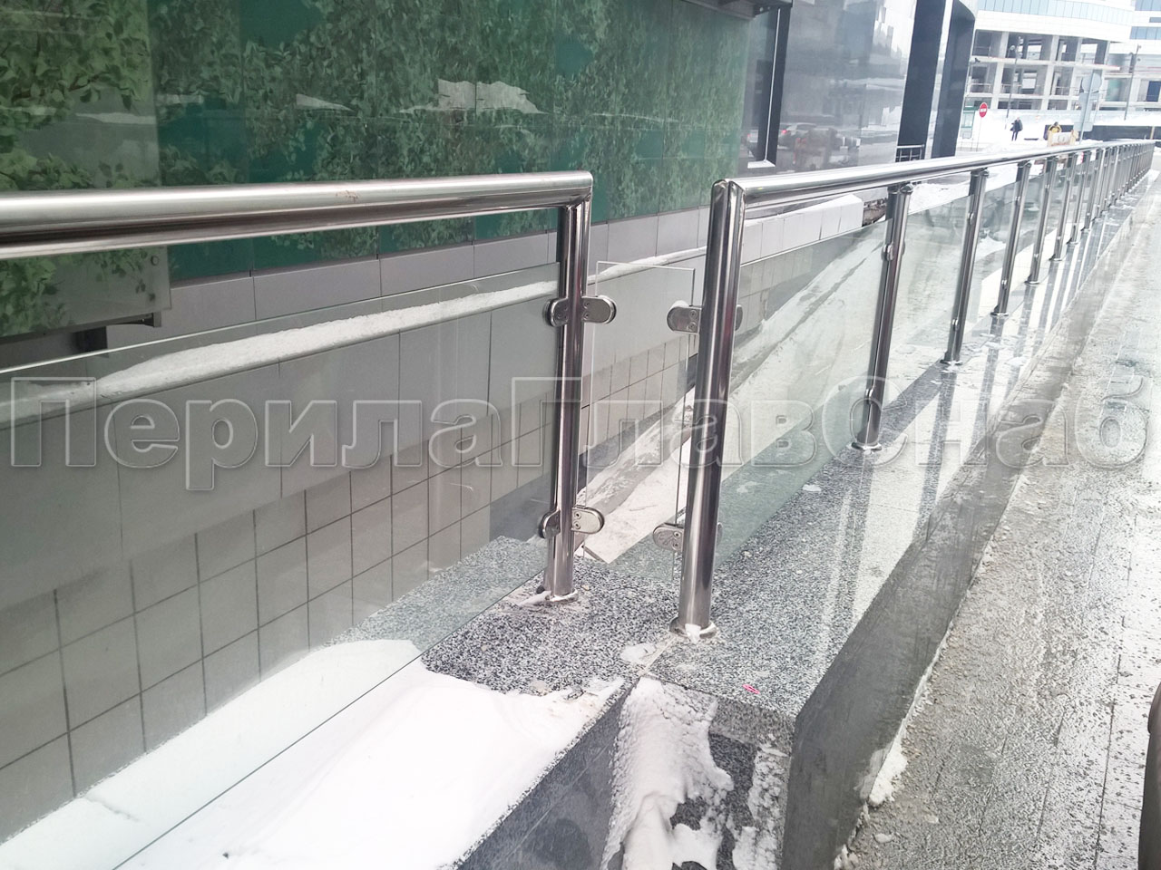 Ограждение для лестницы из нержавейки с зажимными стеклодержателями для крыльца в Нижнем Новгороде. Готовые проекты ПерилаГлавСнаб