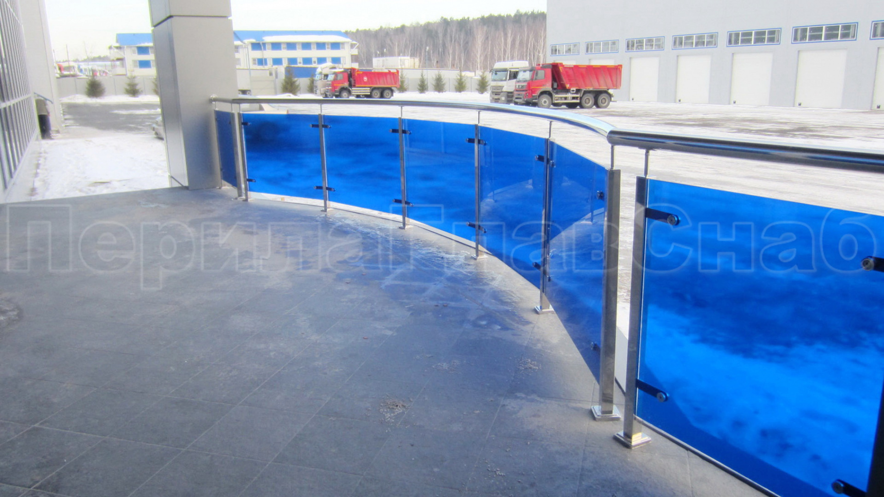 Цельностеклянное ограждение на зажимном алюминиевом профиле для крыльца в Нижнем Новгороде. Готовые проекты ПерилаГлавСнаб
