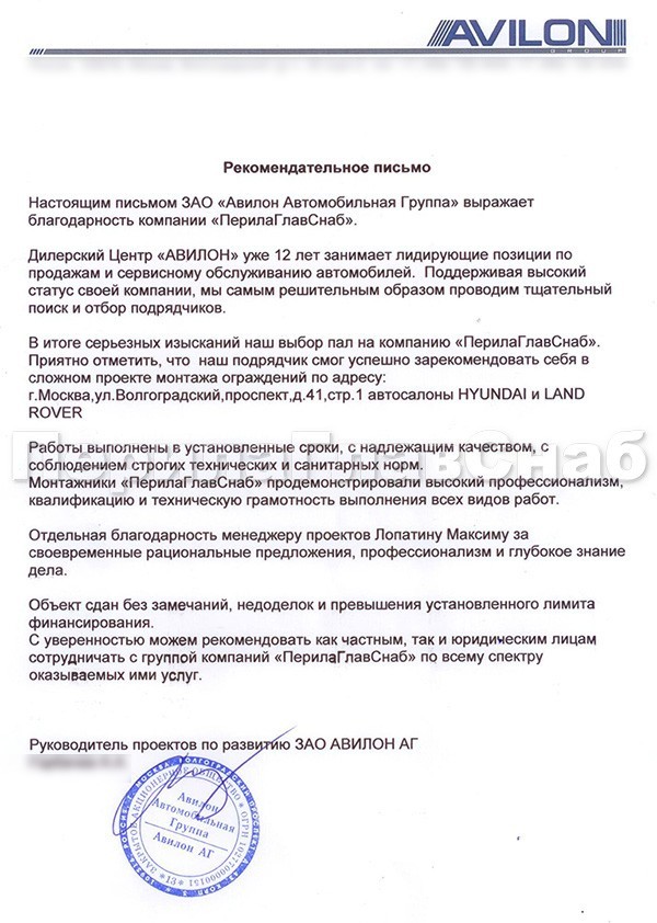 Рекомендательное письмо от Авилон