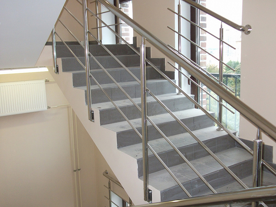 Согласно СНиП 2.08.02-89, на лестничных площадках и пролетах должны присутствовать специальные ограждения. Такие конструкции оснащаются поручнями. В учреждениях, предназначенных для обучения детей младшего возраста, высота перил не может превышать 1,2 метра. Ширина просвета между элементами таких конструкций должна составлять не более 0,1 метра.