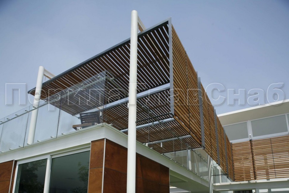 Это ограждение балконов экранного типа с заполнением из стекла. Полностью отсутствуют стойки, поэтому конструкция внешне выглядит очень целостной.