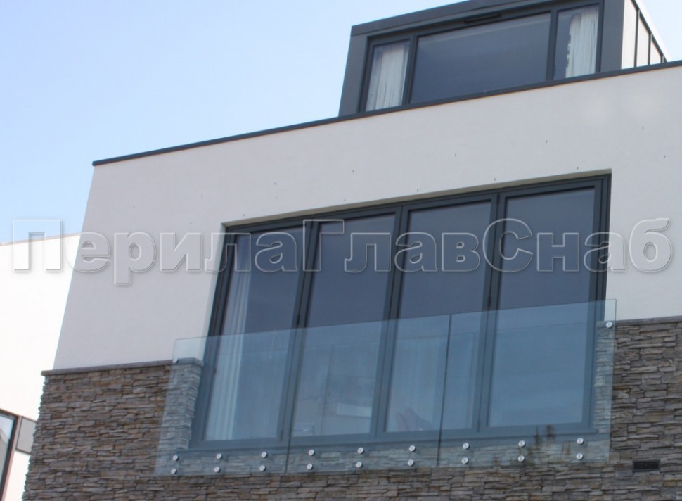 Несущее стекло крепится в торец балконного основания специальными точечными креплениями.