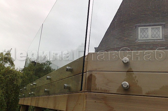 Данный тип ограждений в своей конструкции стоек не содержит. Несущие функции выполняет толстое каленое стекло.