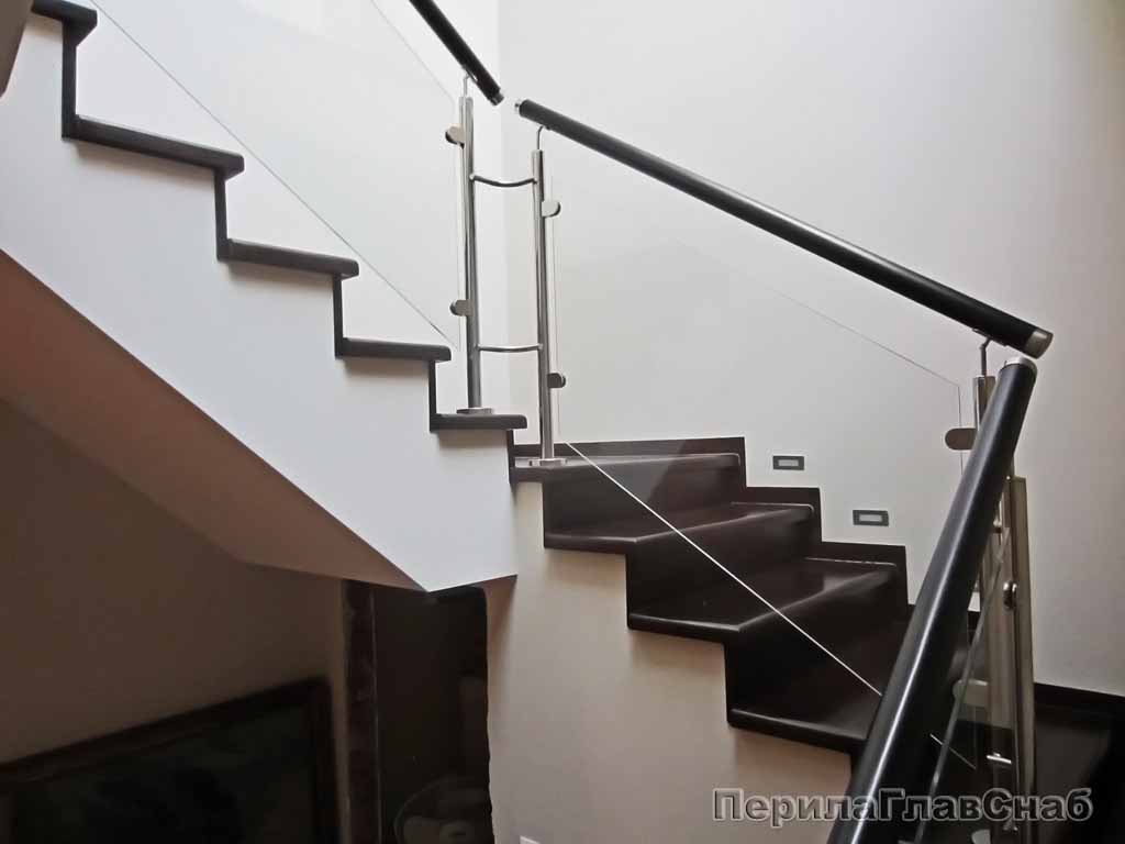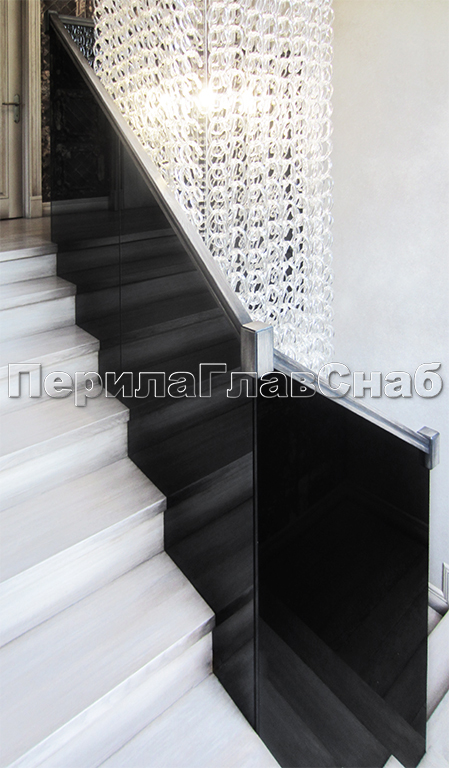 Ограждение лестницы с квадратными стойками и пластинчатыми стеклодержателями в Нижнем Новгороде. Готовые проекты ПерилаГлавСнаб - фото 1 Ограждение лестницы с квадратными стойками и пластинчатыми стеклодержателями в Нижнем Новгороде. Готовые проекты ПерилаГлавСнаб - фото 2