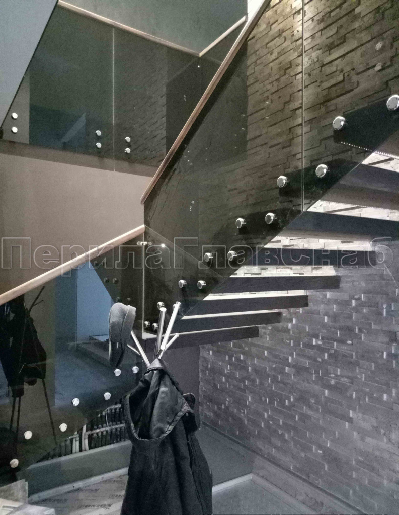 Ограждение для лестницы на несущем стекле с точечным креплением в торец для крыльца в Нижнем Новгороде. Готовые проекты ПерилаГлавСнаб - фото 1 Ограждение для лестницы на несущем стекле с точечным креплением в торец для крыльца в Нижнем Новгороде. Готовые проекты ПерилаГлавСнаб - фото 2