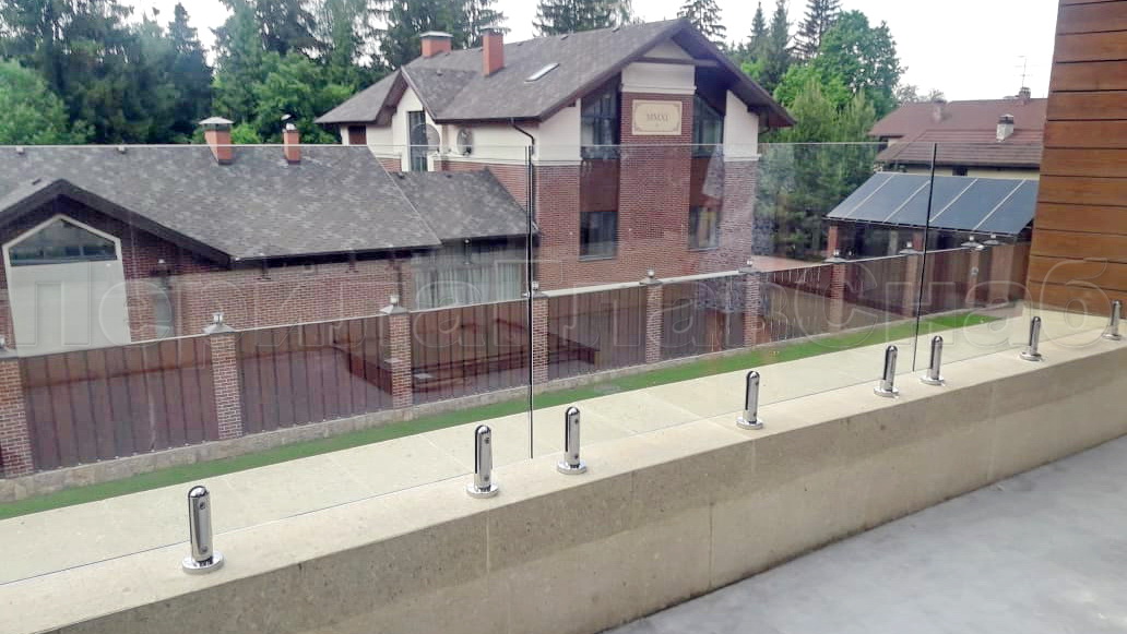 Стеклянные перила на несущем стекле на улице (для приусадебного участка)