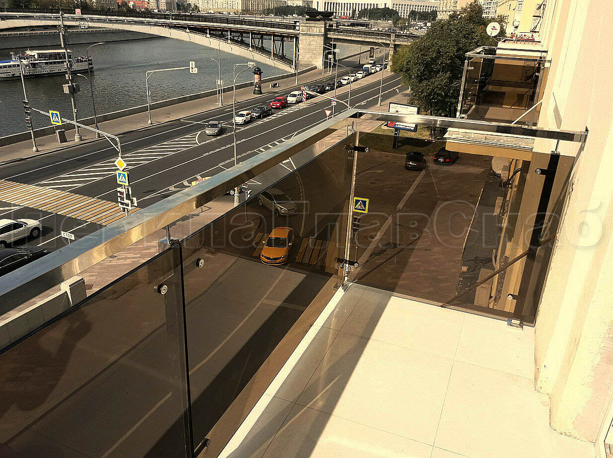 Цельностеклянные уличные ограждения на алюминиевом профиле