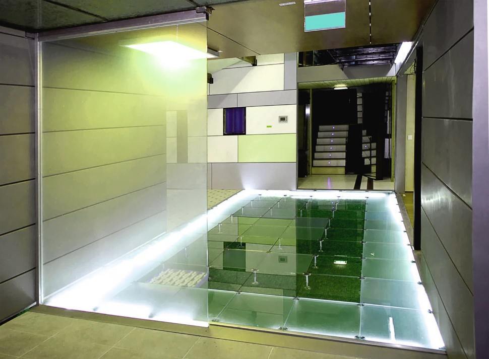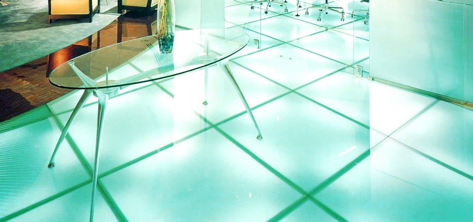 Стеклянные полы, изготовленные из декоративного и матированного стекла