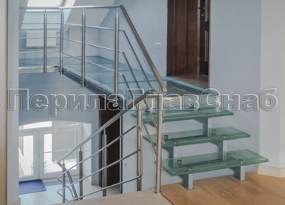 Стеклянные ступени и стеклянная площадка на лестнице в Нижнем Новгороде. Готовые проекты ПерилаГлавСнаб - фото 1