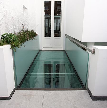Стеклянный пол для легкого перекрытия между этажами