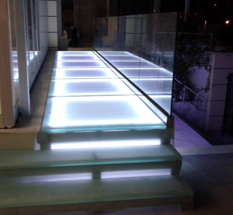 Стеклянное перекрытие из матового стекла на внутреннем балконе