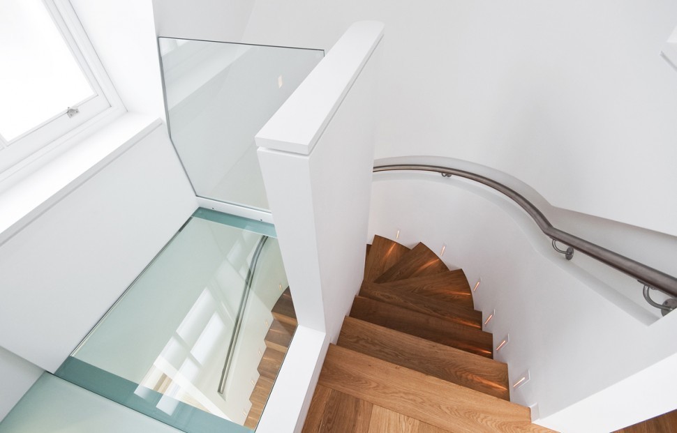 Стеклянные полы на площадке маршевой лестницы