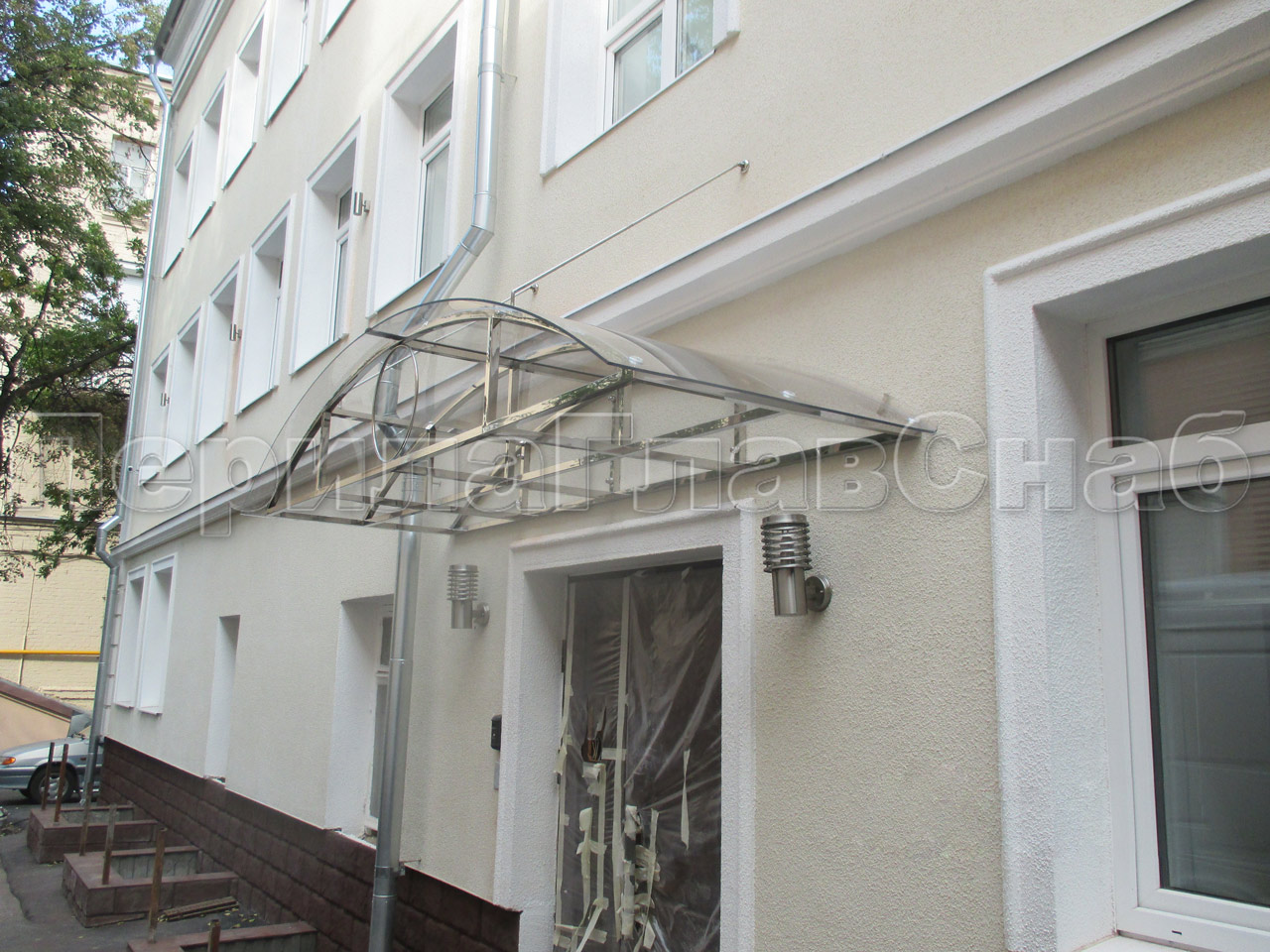 Козырьки и навесы на металлокаркасе